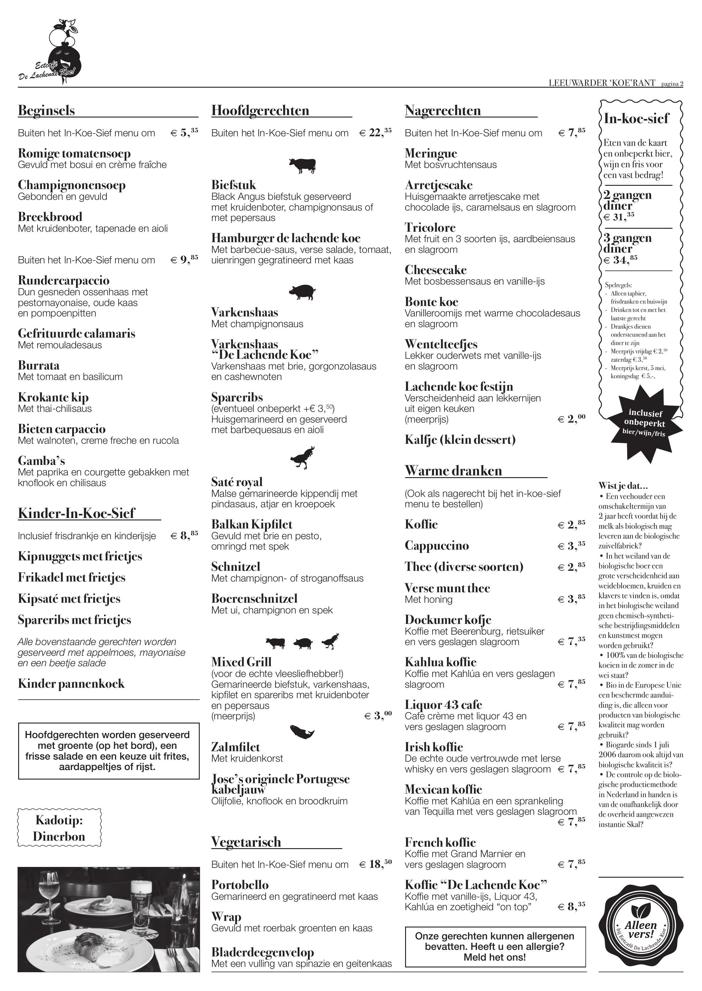 Heeft u allergieën of speciale wensen? Geen enkel probleem! Geef dit even door bij uw reservering, dan houden wij er rekening mee.